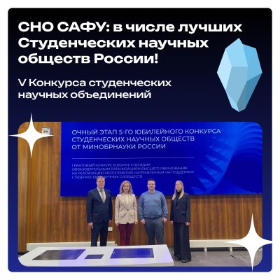 Северный (Арктический) федеральный университет имени М.В. Ломоносова вошел в число победителей V конкурса студенческих научных обществ (СНО), организованного Министерством науки и высшего образования Российской Федерации.
