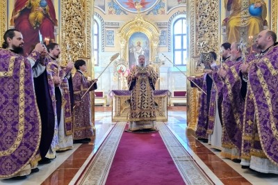 Глава митрополии 29 марта совершил Божественную литургию в Михаило-Архангельском кафедральном соборе.
